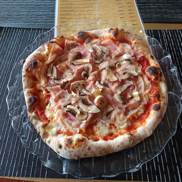 paradicsomszósz, olasz főtt sonka, gomba, mozzarella sajt